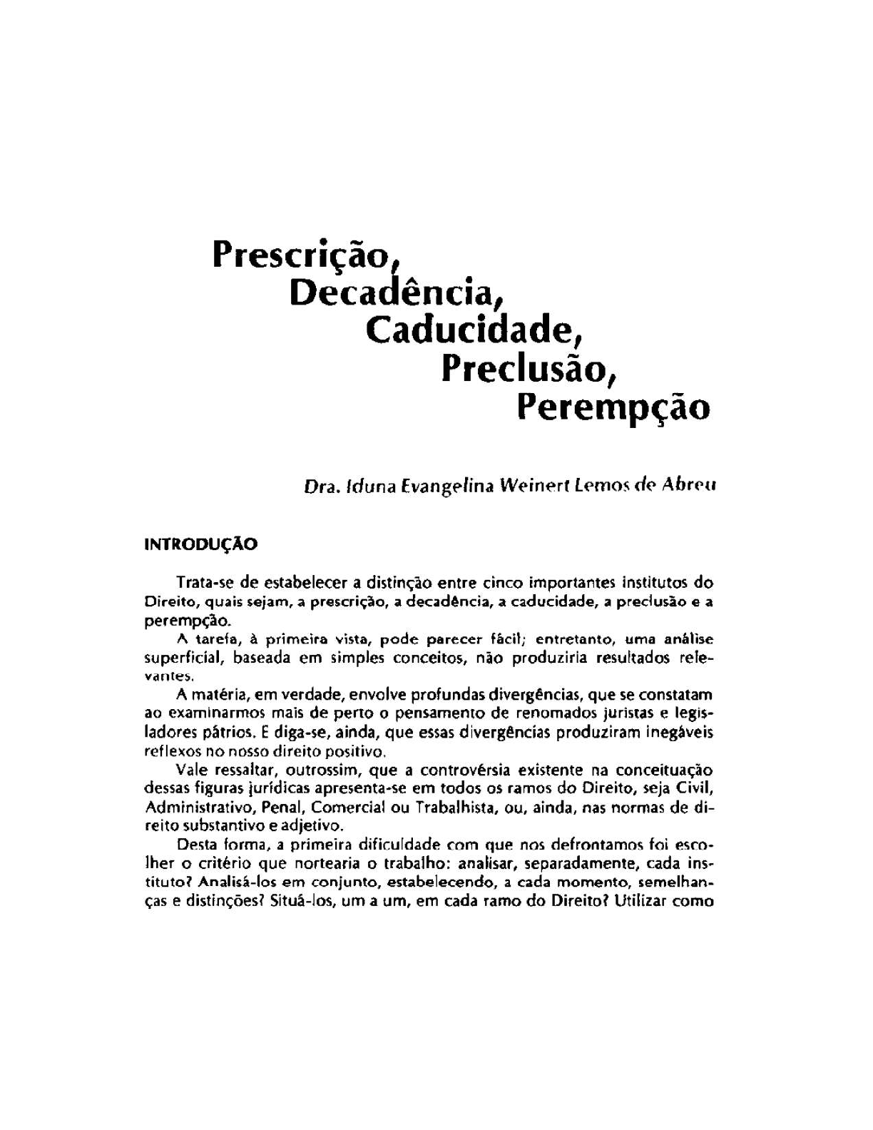 Aprescrição,decadência, preclusãoeperempçãosãoprazos legaisqueafetam o direito da parteerefletem muito bem essa expressão aí de cima. Apesar de serem diferentes,émuito comum tratar essesinstitutosjurídicos como sinônimos.