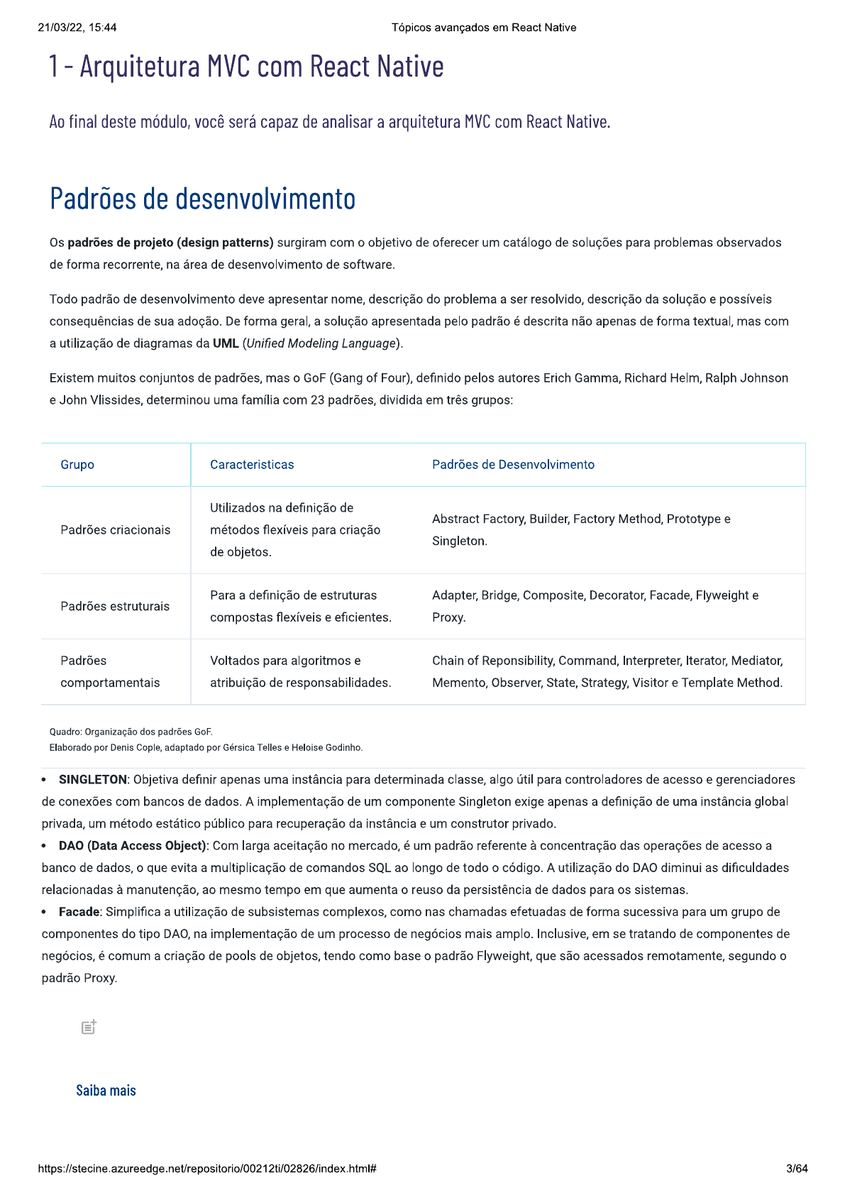 Neste curso você vai aprender como criar e configurar anavegaçãodeum aplicativoReactNativeutilizando as navegações: Stack navigation, Drawer navigation e Tab navigation.