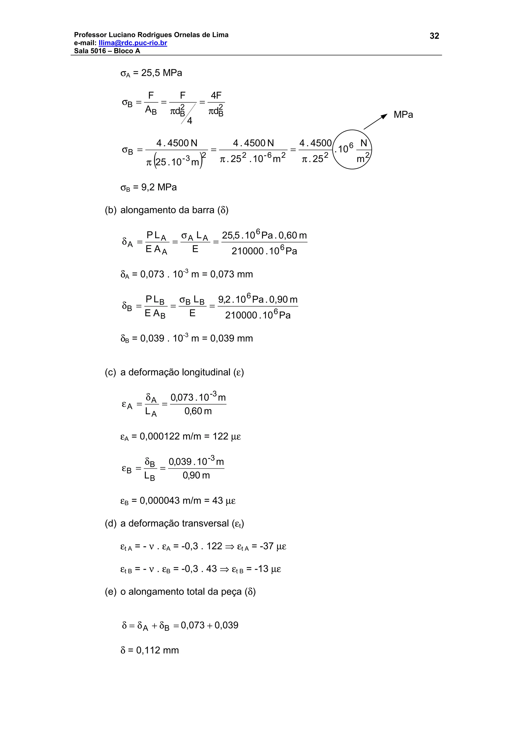 Por este motivo, quaisquer que sejam os carregamentos ou solicitaçõessobreo material, vale a superposição de efeitos, ou seja, pode-se avaliar o efeito de cada solicitaçãosobreo materialedepois somá-los.
