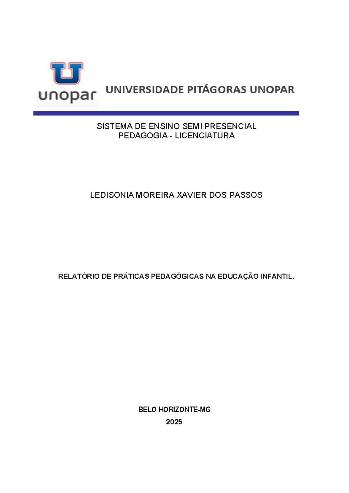 PortfólioIndividual-PráticasPedagógicasnaEducaçãoInfantilPráticasPedagógicasnaEducaçãoInfantilé uma atividade fundamental do curso de Pedagogia das Faculdades Anhanguera e Unopar, voltada para a formaçãopráticae reflexiva dos futuros professores que atuarãonaprimeira etapa daeducaçãobásica. Neste trabalho, o acadêmico é convidado a registrar, analisar e