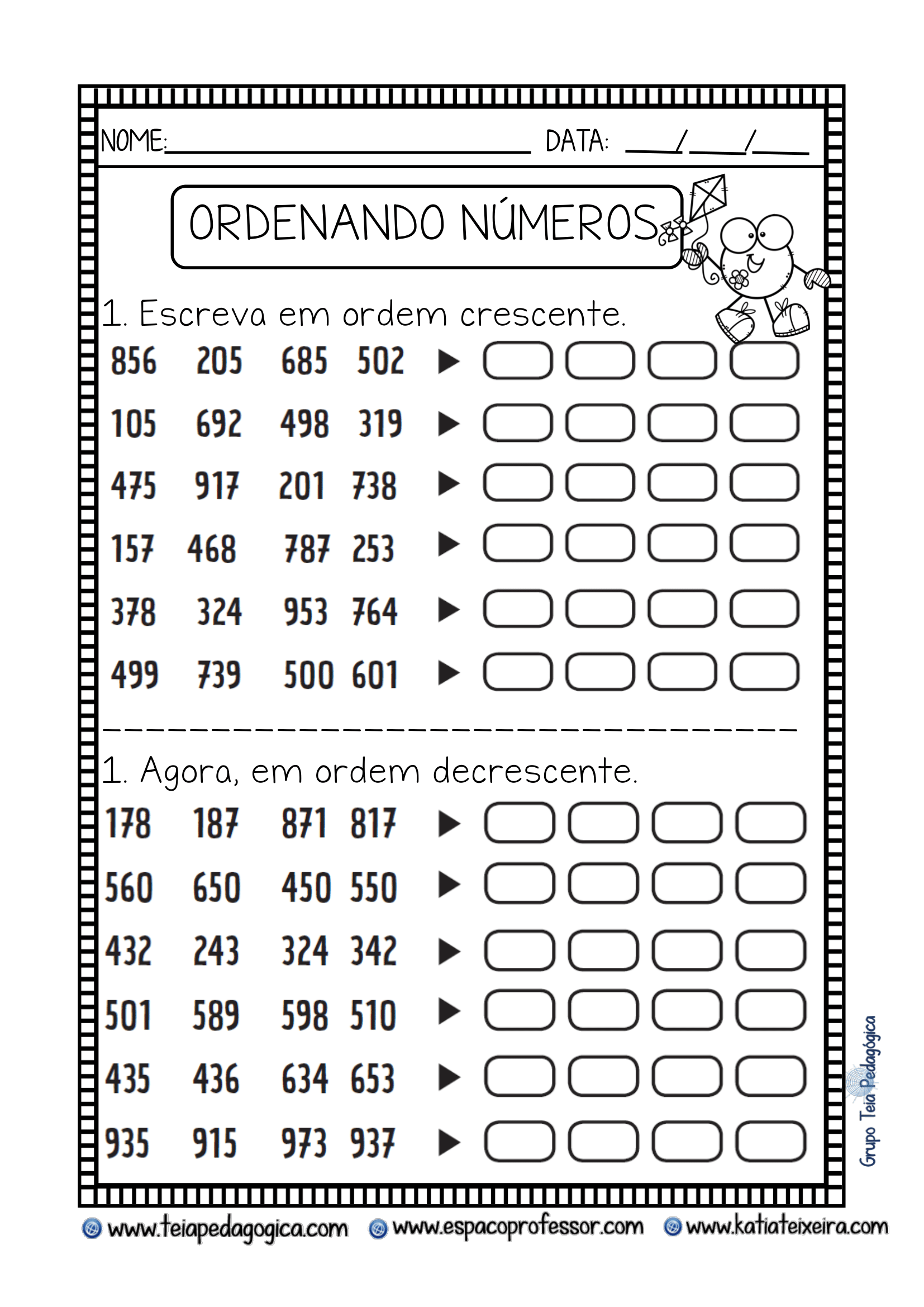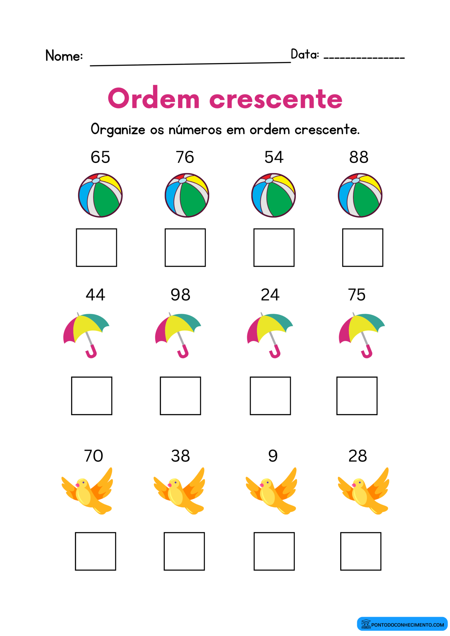 coloque os numeros em ordem crescente - Unjumble