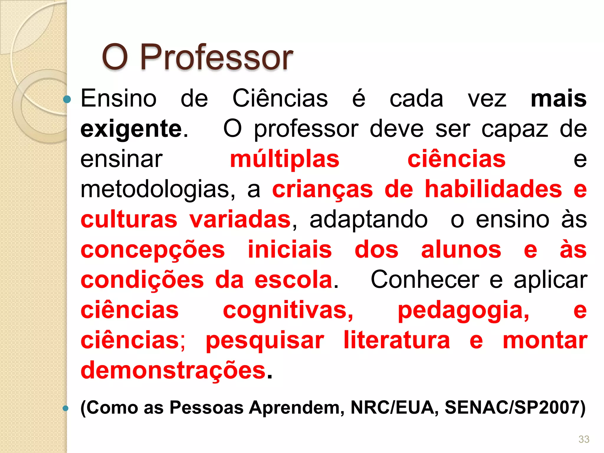 Tradicionalmente O Ensino De Ciências Limitava Se Aos Conteúdos